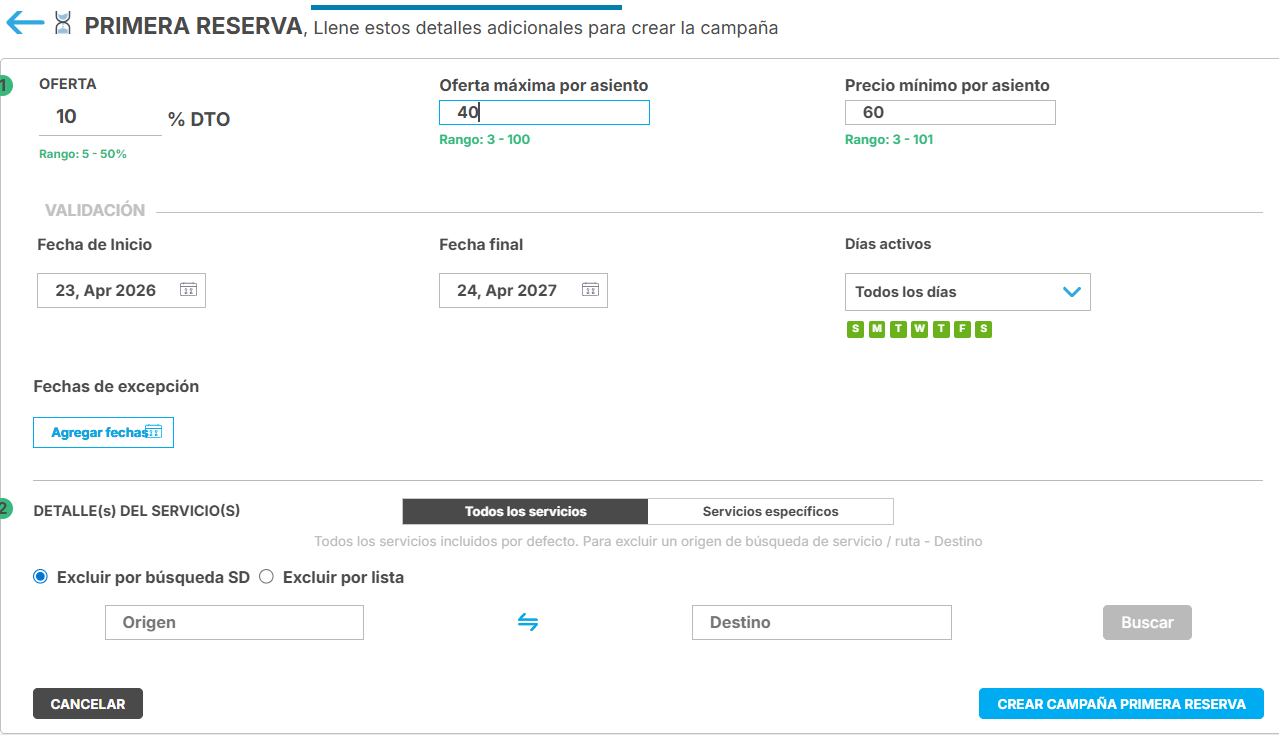 - Configuras la promoción