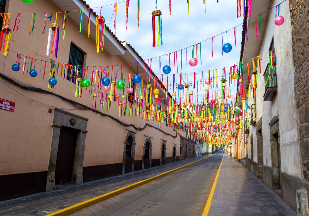El Carnaval Ayacuchano es una fiesta tradicional muy colorida que se celebra en febrero o marzo en Ayacucho, Perú. Esta celebración reúne música, danza y comparsas que recorren las calles al ritmo de huaynos y coplas festivas.