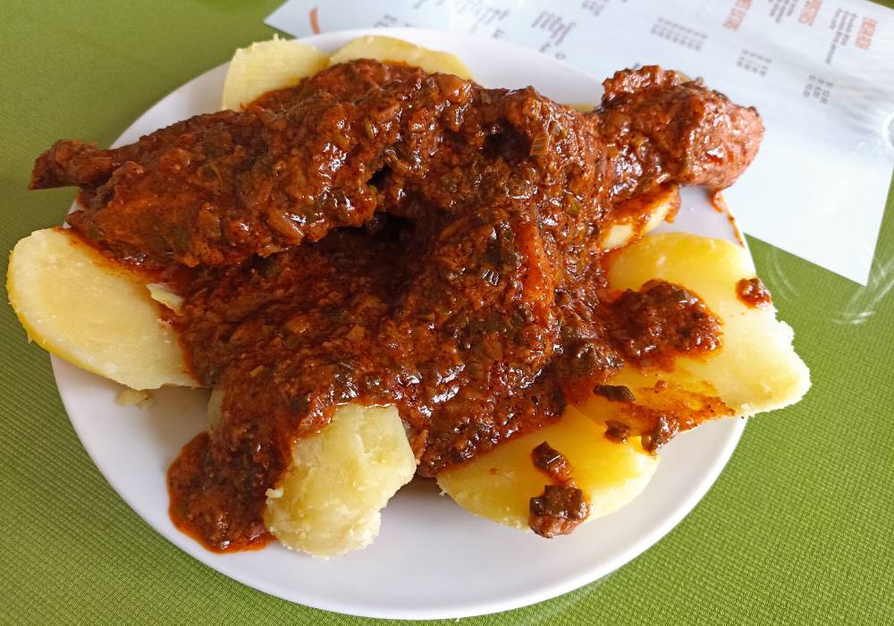 • Picante de Cuy: Guiso tradicional andino de cuy con ají y especias, acompañado de papas y mote.