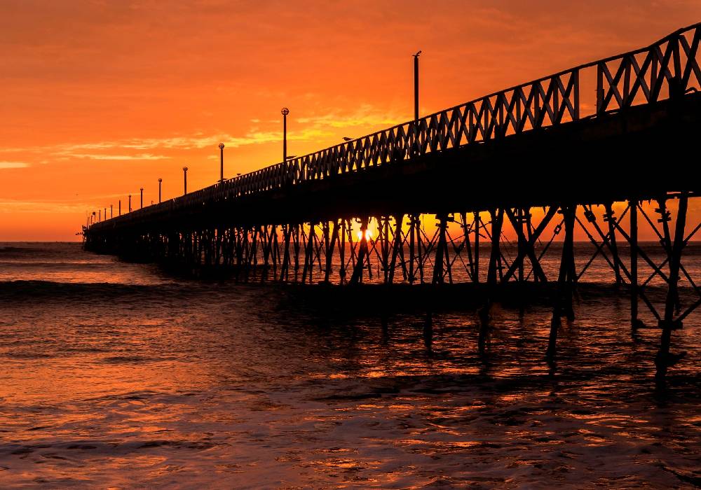Pacasmayo está aproximadamente a una hora y media desde Trujillo y es conocido por su malecón restaurado y su ambiente costero relajado. Aquí puedes practicar kitesurf y windsurf si los vientos están a tu favor, y también puedes caminar por el muelle, observar la arquitectura local y probar la gastronomía marina tradicional en los restaurantes del lugar. Esta playas combina la calma con oportunidades de aventura para quienes buscan un plan diverso.